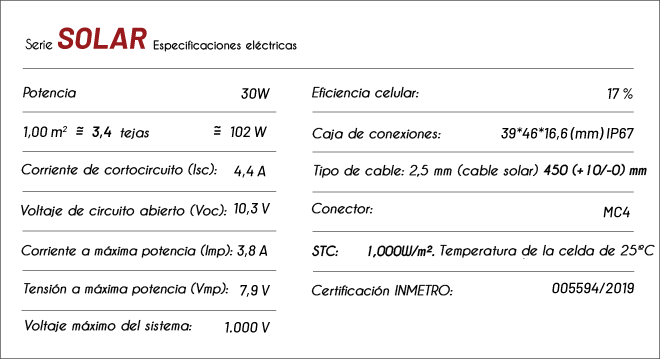 A través de la inquebrantable tecnología de vaporización catódica al vacío, considerada la mejor tecnología para la fabricación de películas finas CIGS, 01 (un) m² de la teja solar es capaz de generar 102W/m², por cerca de 1.200 hrs/año.